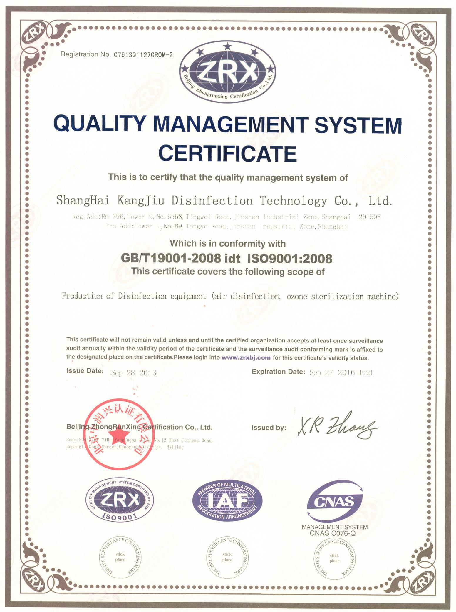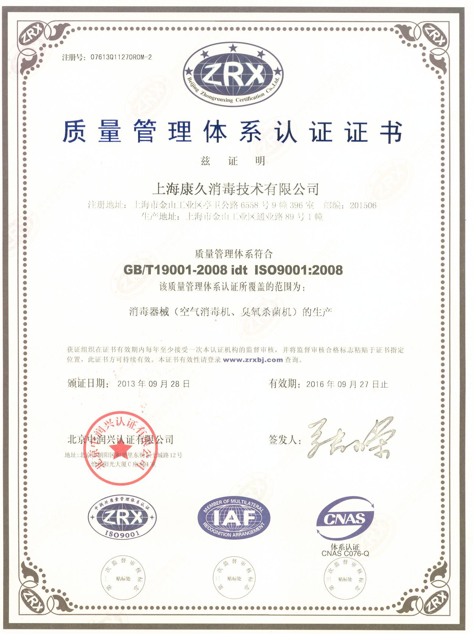 质量认证证书